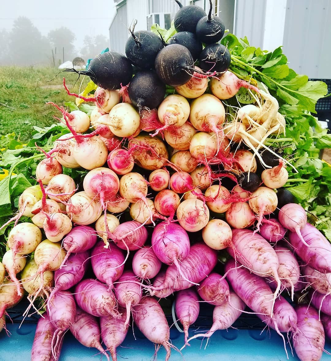 Our past couple days pulling out and doing an inventory of the season’s last veg will give you a little preview: we’ll have tons of root veg on the way! Turnips and storage radishes are one of our favorite bits of of fall produce to share with people. We know most people don’t like them, but we’re convinced it’s because most people haven’t eaten them the RIGHT way! And we’ll have lots of ideas to share with you.